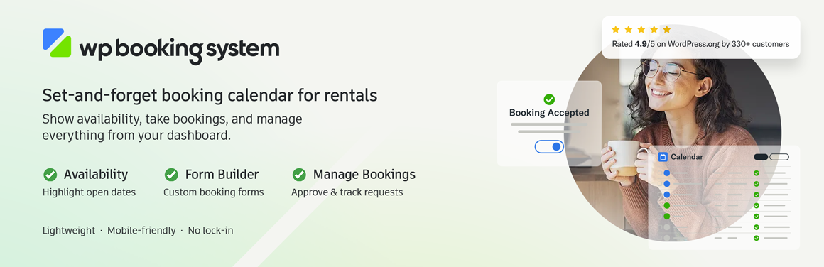 The booking calendar plugin for WordPress. WP Booking System is used by more than 10,000 active users, with a satisfaction rate that borders on 5*!