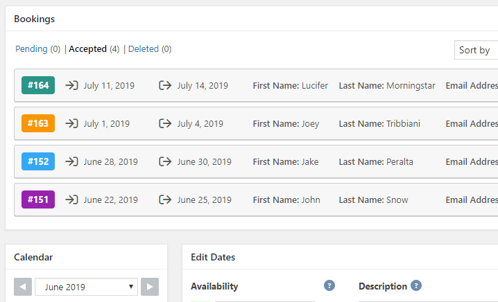 All your bookings are saved in your rental calendar and are beautifully displayed so you can easily access them and view the booking details.